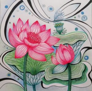 LOOTOSED KOLME KIILIGA / Lotuses with three dragonflies